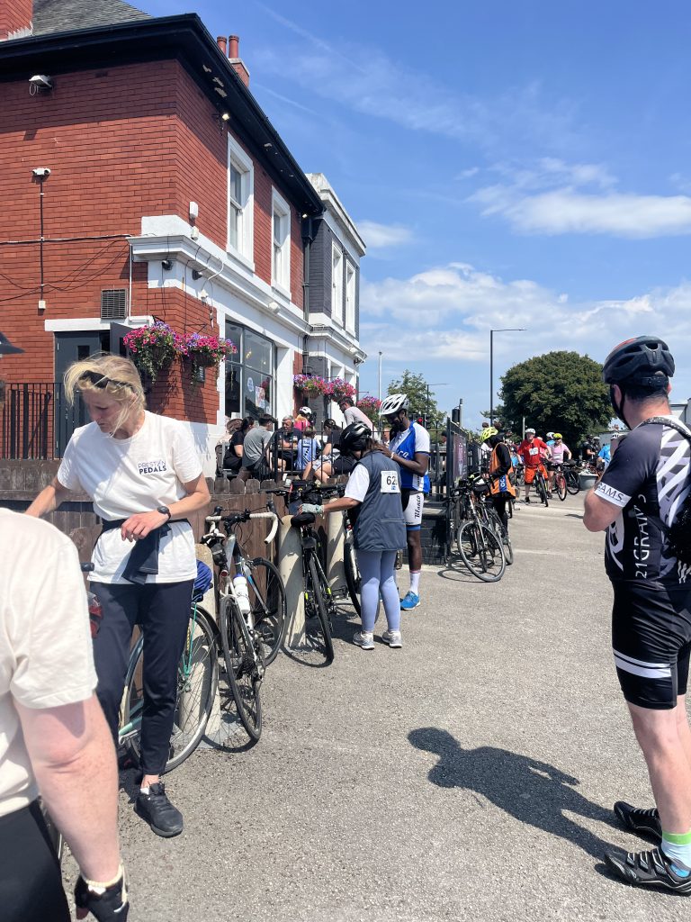 Seven keen cyclists from Preston Pedals – Shanaz, Sandi, Sam, Fran, Andy, John and Jo – met at 5.45am on a hot Sunday morning in July to get the minibus with our bikes to the start of the ride at Salford Quays. It was already 20 degrees! After a bike check we set out from the Quays at 7:30 am starting the 60 mile cycle ride to Blackpool, through greater Manchester towns and villages.