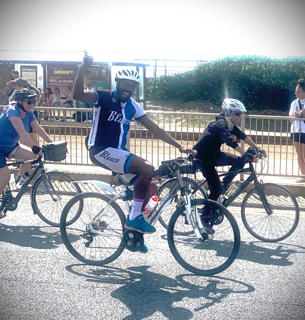 What a great achievement for us all, and it was amazing to be cycling with such a supportive group, encouraging each other to keep on pedaling-we felt quite emotional getting through the finish line and joining the other cyclists at the end. It was baking hot all day, and we all got a tan and looked forward to relaxing baths and showers and a very early night and good sleep. It was, we all agreed a great day to remember, a fantastic memory for life!